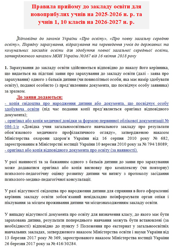» Правила прийому до закладу освіти